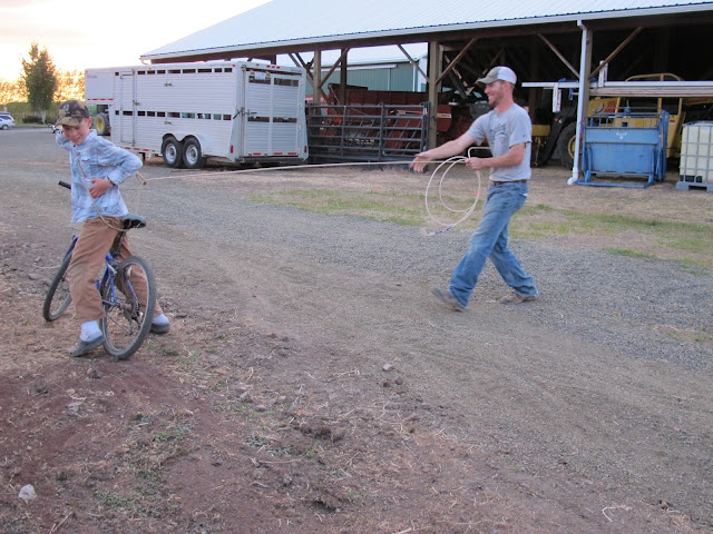 In the following photos, Chad is attempting to rope the younger siblings as they ride past on their bikes. Enjoy!